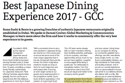 Announced by ME Awards, Congratulations to Sumo!! Visit the website, page 46-47 on http://www.middleeast-markets.com/2017-uae-business-awards or