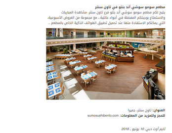 BAWS.AE features Sumo Sushi & Bento that hosts this year's FIFA World Cup! Enjoy the games with a family-friendly restaurant located at Jumeirah Town Centre!
